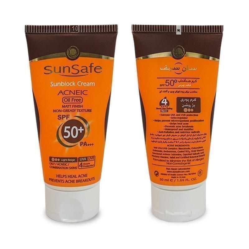 کرم ضدآفتاب فاقد چربی spf50 (بژ روشن) _ سان سیف